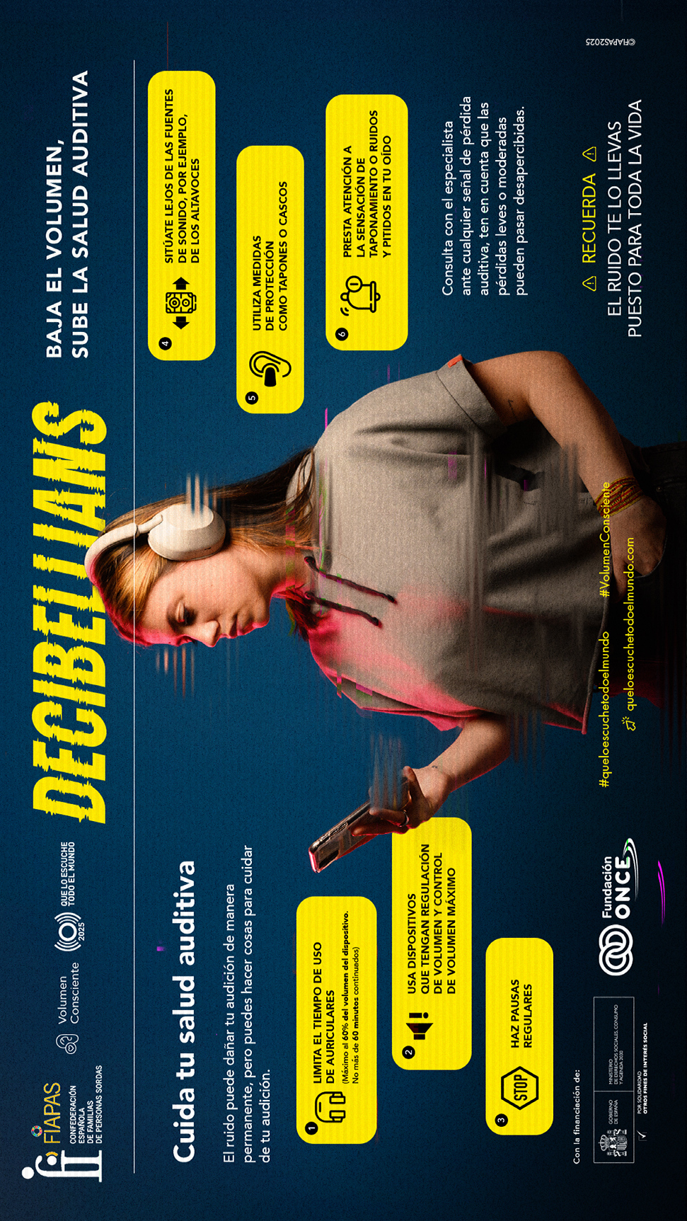 La prevención constituye el primer paso. FIAPAS alerta sobre los efectos nocivos e irreversibles de la exposición continuada a niveles elevados de ruido, especialmente entre la población joven, debido al uso intensivo de dispositivos electrónicos de audio personales y la creciente presencia de entornos ruidosos. Además, los efectos en la audición son permanentes y se producen de manera progresiva y sin darse cuenta. Promover campañas de concienciación y fomentar hábitos saludables de escucha desde edades tempranas resulta esencial para reducir el impacto futuro de la pérdida auditiva.