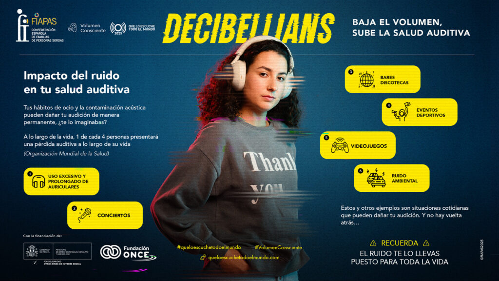 A través de materiales visuales y mensajes impactantes, esta campaña “DECIBELLIANS” busca generar un cambio real en la percepción del ruido y fomentar una cultura de prevención de la salud auditiva entre la juventud.